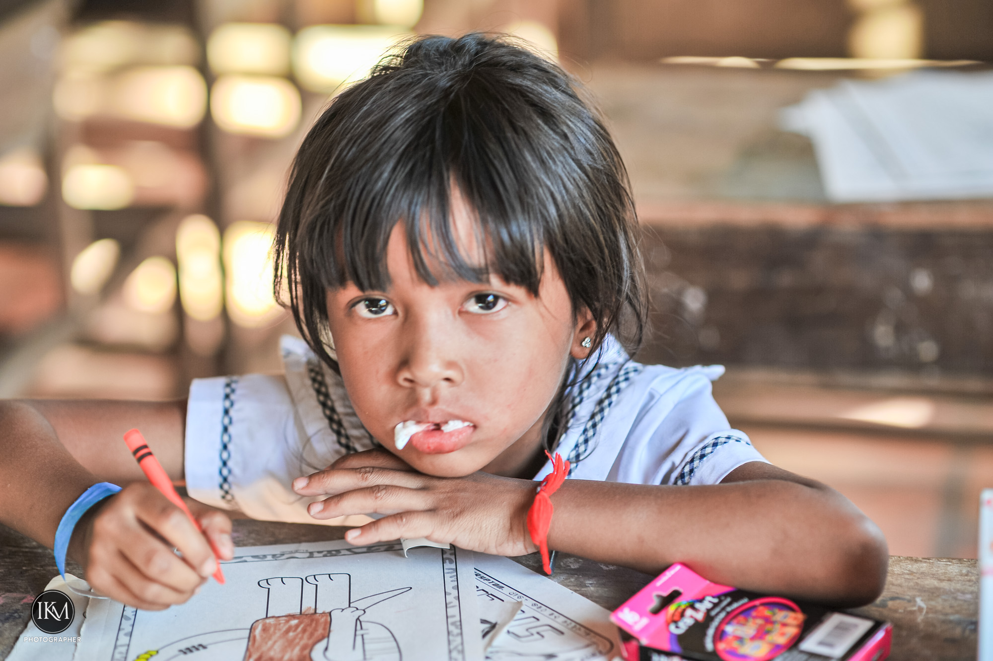 - Srey Leak, eight, has missed school because of an infected molar. A gentle extraction relieves her suffering. Later, she returns with her younger brother Dara, terrified but reassured by her whispers. He leaves grinning, a sticker on his shirt, his fear replaced by pride.